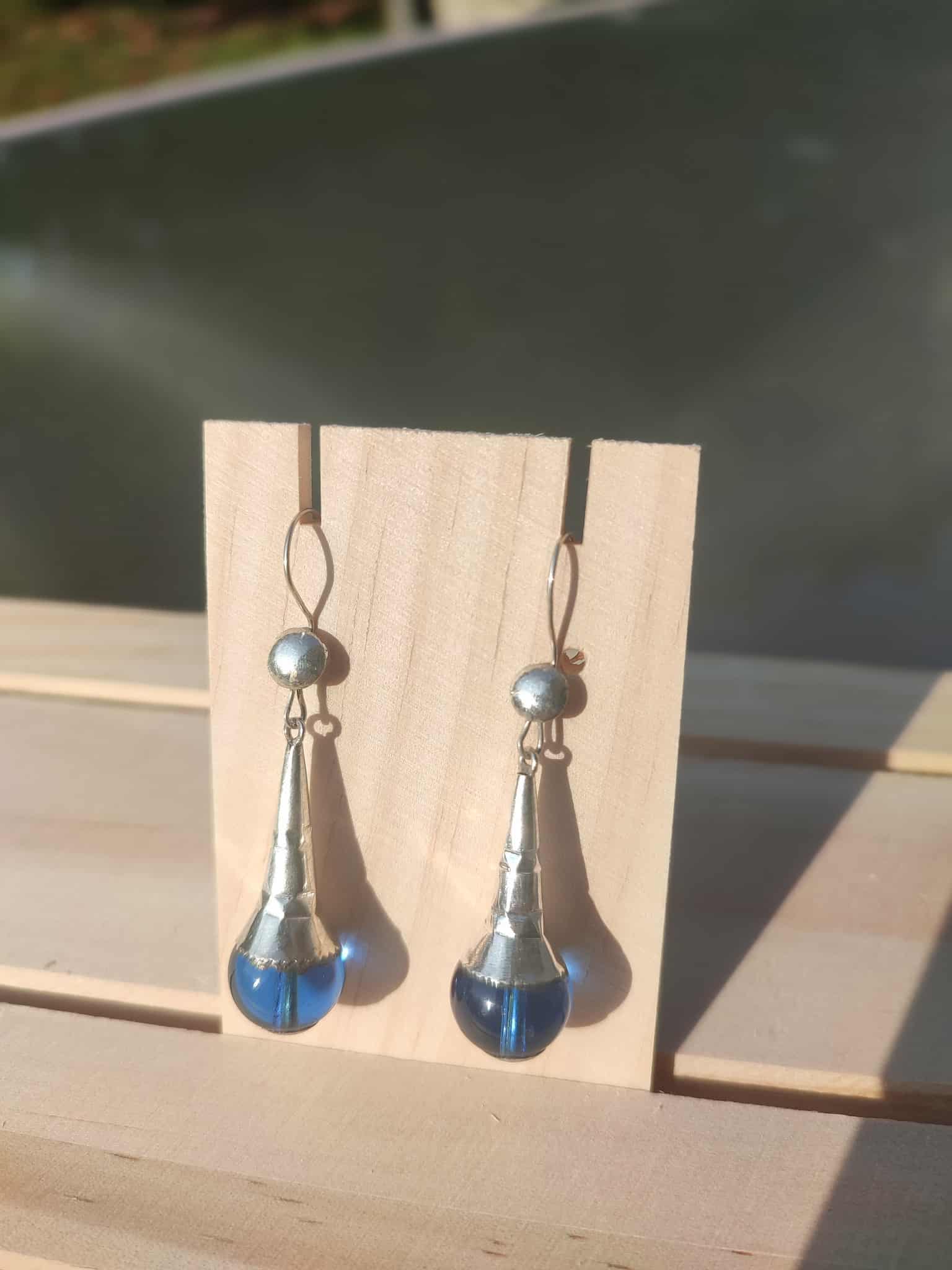 Boucles d’oreilles perle Agathe bleue en argent – Pièce unique, faite main au Niger