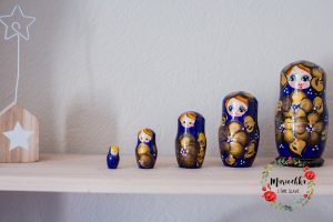 Elle est composée de 7 poupées, ce nombre de poupées est le nombre traditionnel, comme les 7 jours de la semaine…